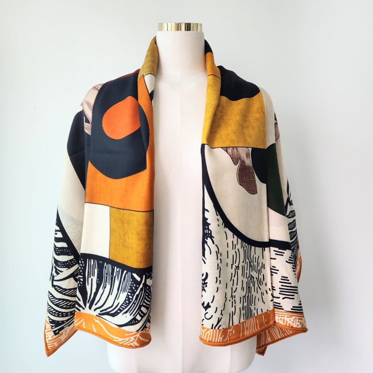 Tatouages Marins Bandana shawl 140 타투아주 마린스 반다나숄 140 - 마린 실크 30% + 캐시미어 70% 숄...