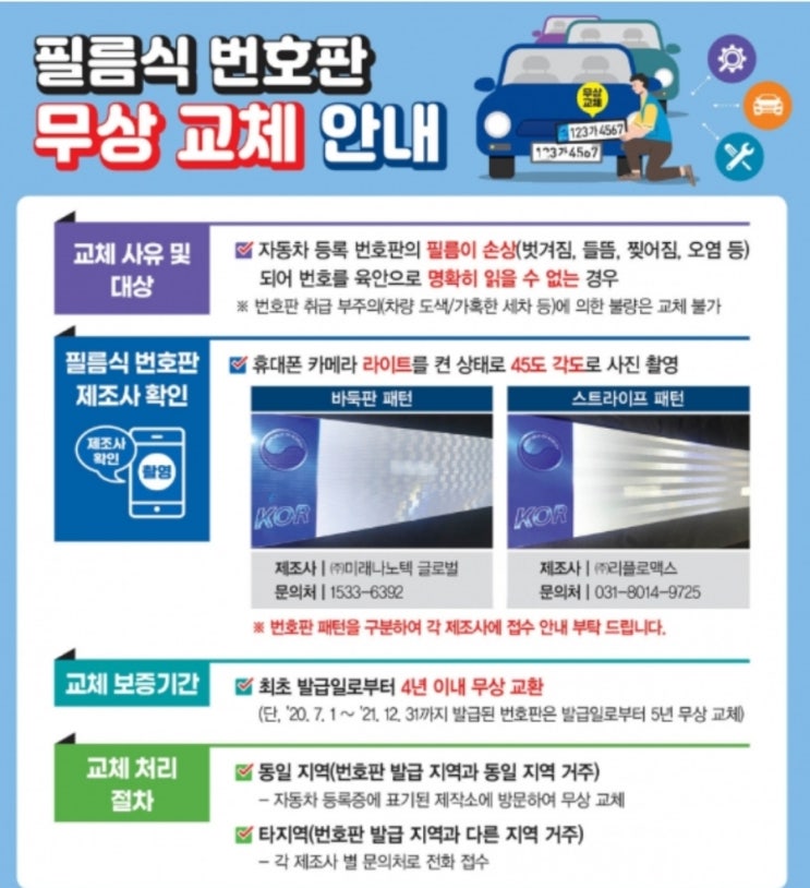 신형번호판 불량 교체 후기