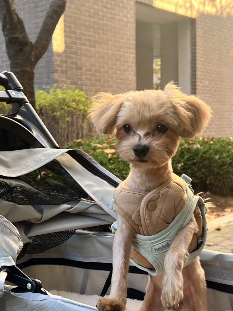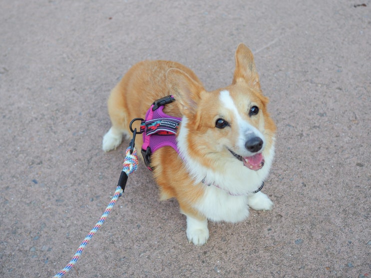 오늘은 콩이 새 강아지하네스 리드줄 착용했어요 기존에 있던 하네스는 리드줄이 길다 보니 산책시킬 때 불...