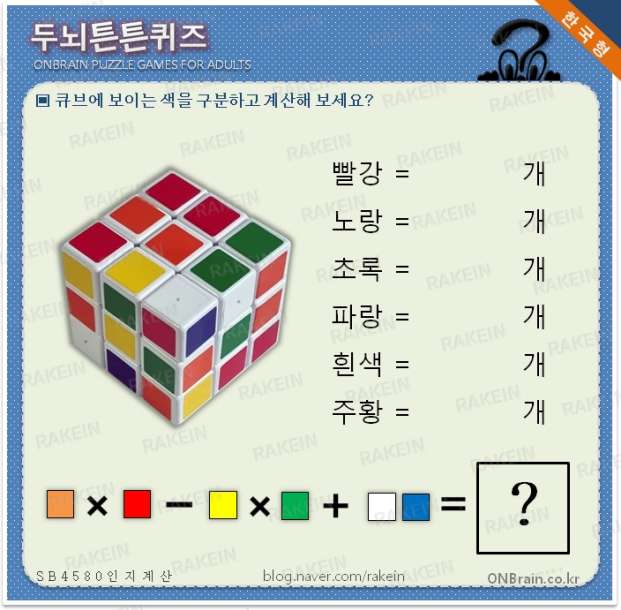 두뇌튼튼퀴즈- 10월 17일 B4580번 큐브, 위치 구분, 색 구분 사칙계산 ONBrain Cognitive Learning f...