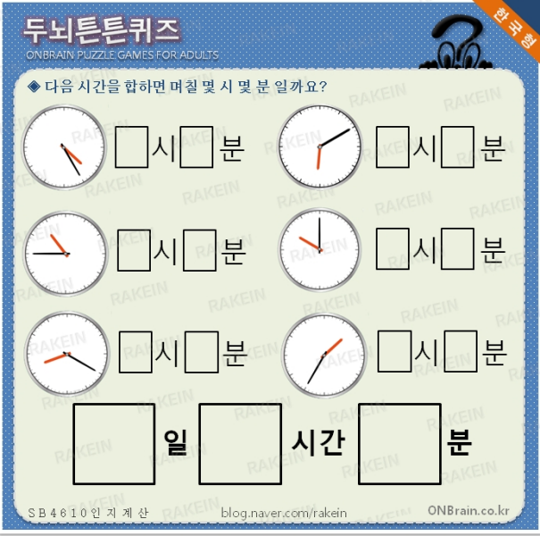 두뇌튼튼퀴즈- 10월 23일 B4610 시간인지 공간인지 계산 시간 시계 ONBrain Cognitive Learning for ...