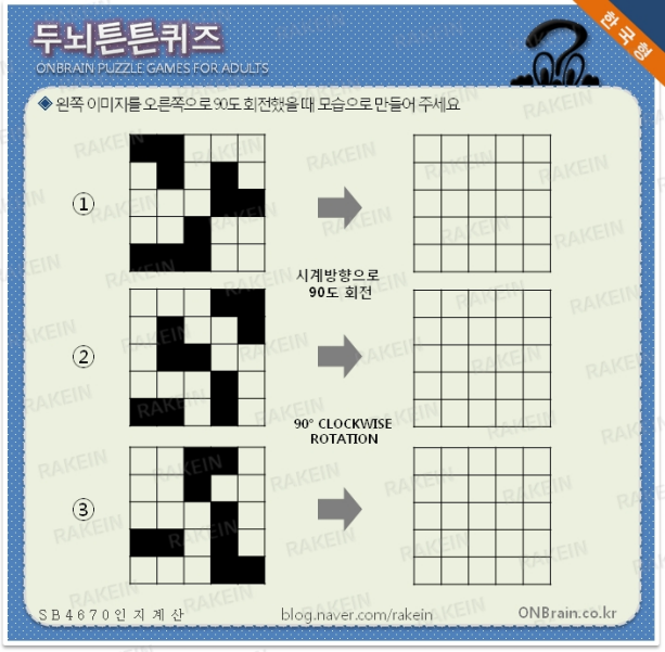 두뇌튼튼퀴즈- 11월 1일 B4670번 시지각인지 공간인지 회전 감각 공간 감각 ONBrain Cognitive Learn...
