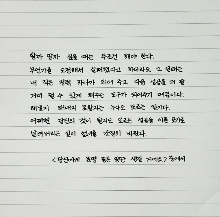 할까 말까 할 때 성공의 문을 두드려라,도전은 나를 믿는 것이다,도전과 실패 그리고 성장의 연결고리,당신에게 분명 좋은 일만 생길 거에요,이슬비