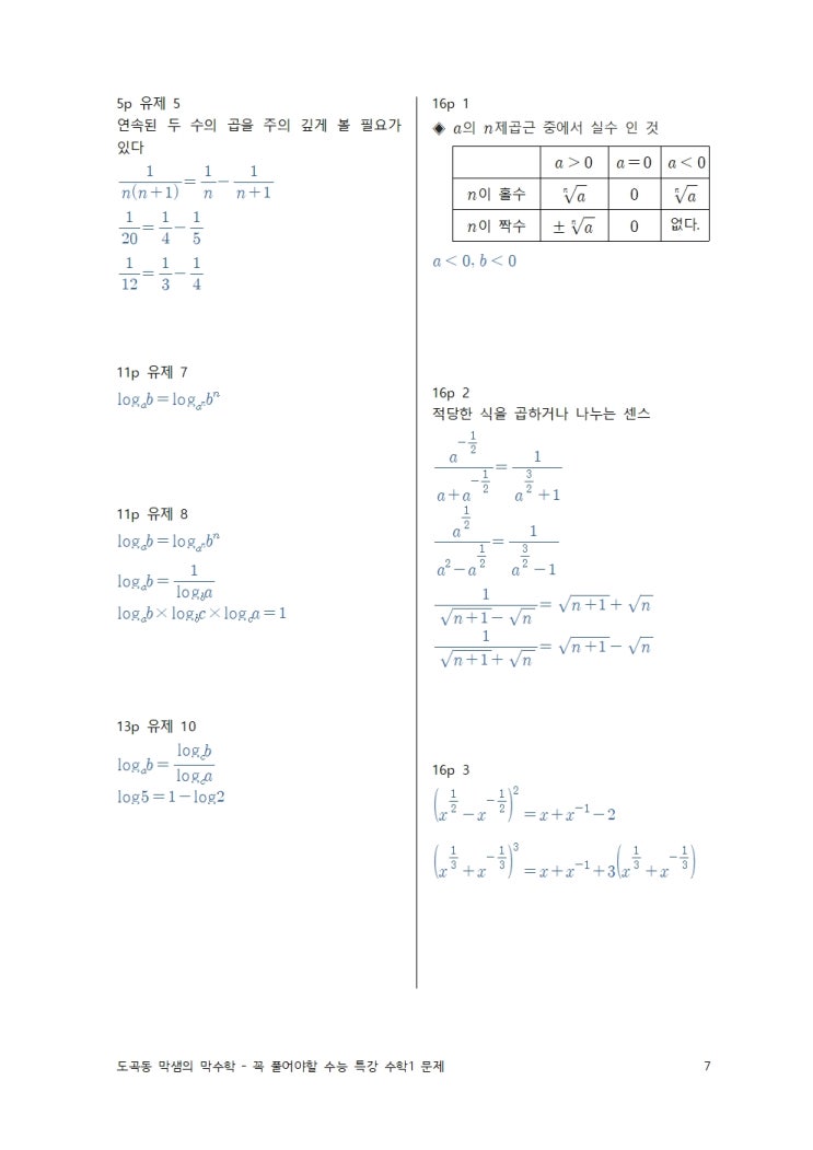 꼭 풀어야할 수능특강 수학1 1 ~ 3단원 문제