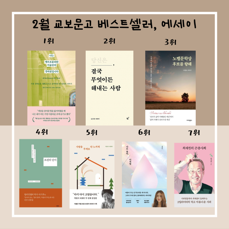 24년 2월 교보문고 에세이 베스트셀러, 책 순위, 읽고 싶은 책 추천