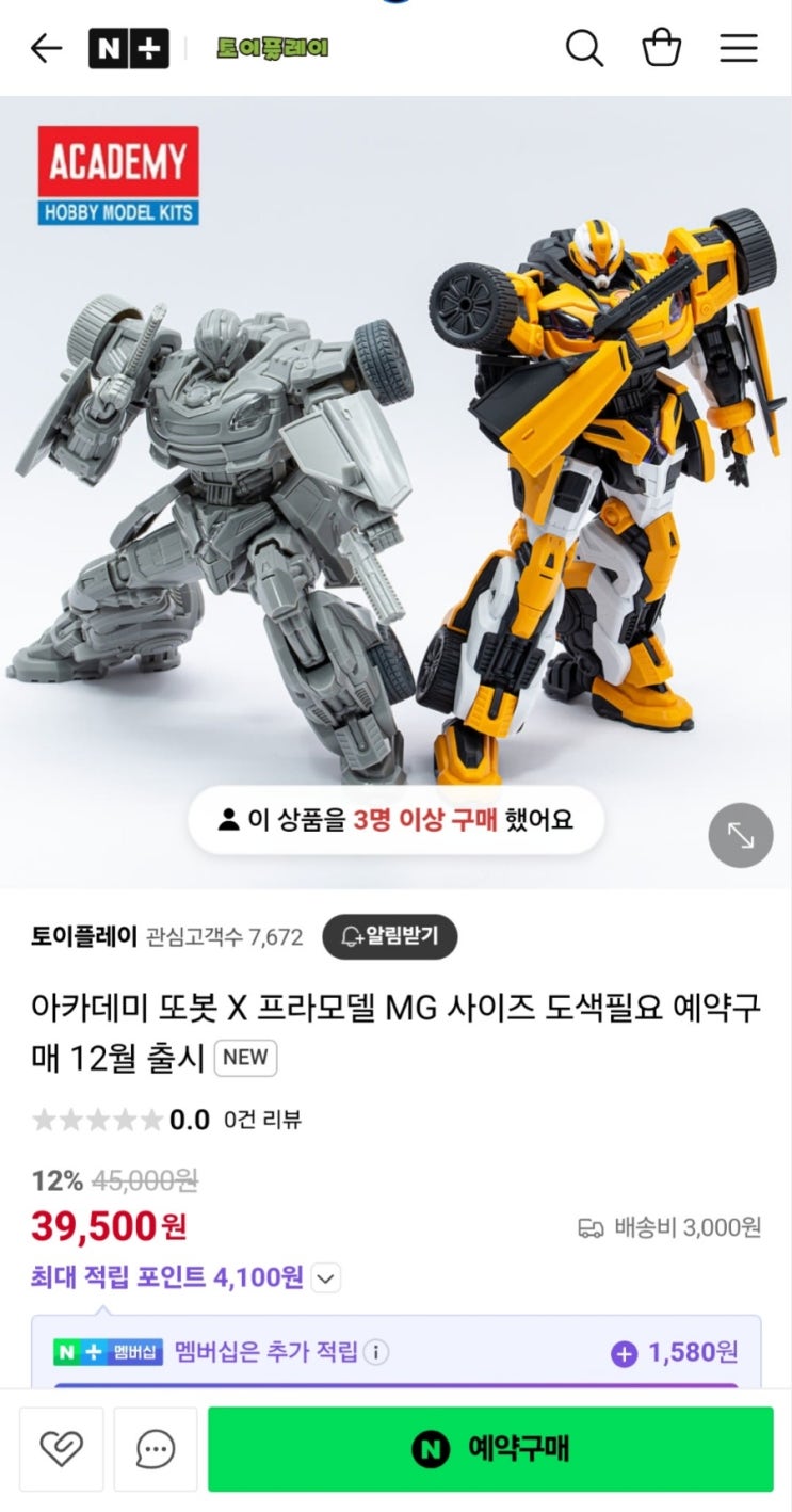 또봇X 프라모델 (도색필요) 예약구매 시작