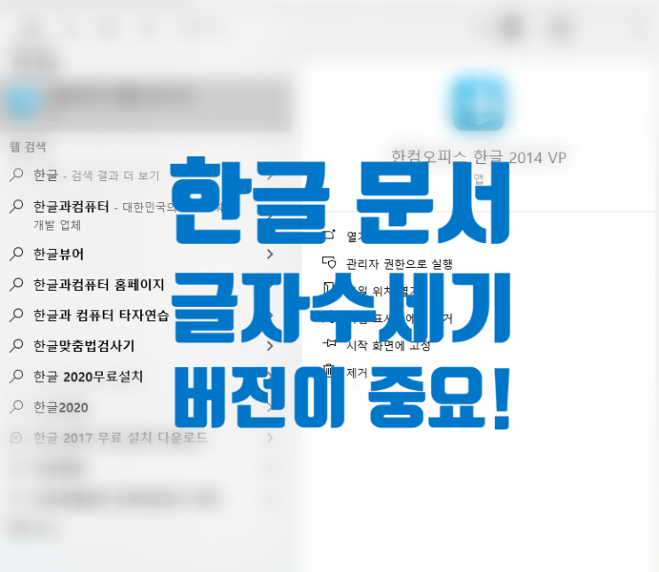 한글 문서 글자수세기 읽기가 안되는 버전일 경우