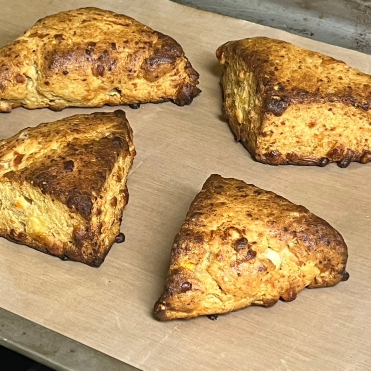 오늘은 오랜만에 스콘을 구웠는데 제 마음대로 구워봤어요 ㅋㅋㅋ 태운버터+ 4종치즈+ 통밀가루+아몬드가루...