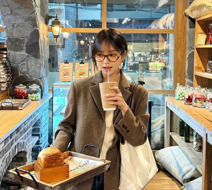 아이보리 니트와 청바지에 가을 분위기가 나는 브라운 자켓으로 대학생룩을 완성한 김지영님의 대학생 가방...
