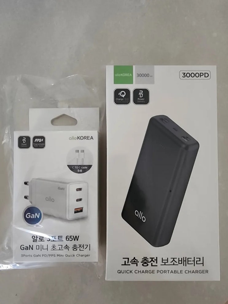 알로코리아 고속충전 보조배터리 30000mAh 65W 3포트 충전기 C TO C 케이블 세트