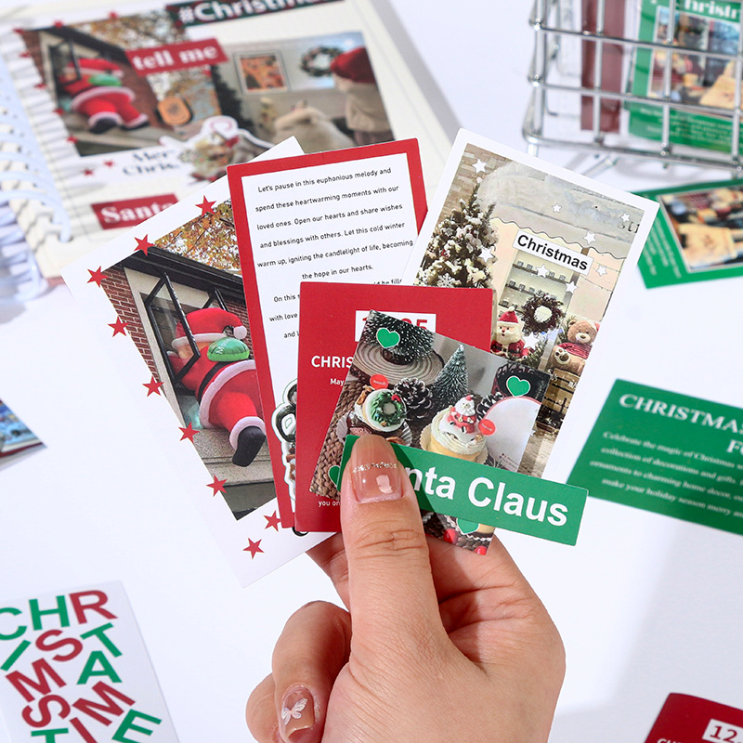 콜라쥬 스크랩다꾸에 포인트를! 크리스마스 조각 스티커 50장 모음 산타 트리 스티커
