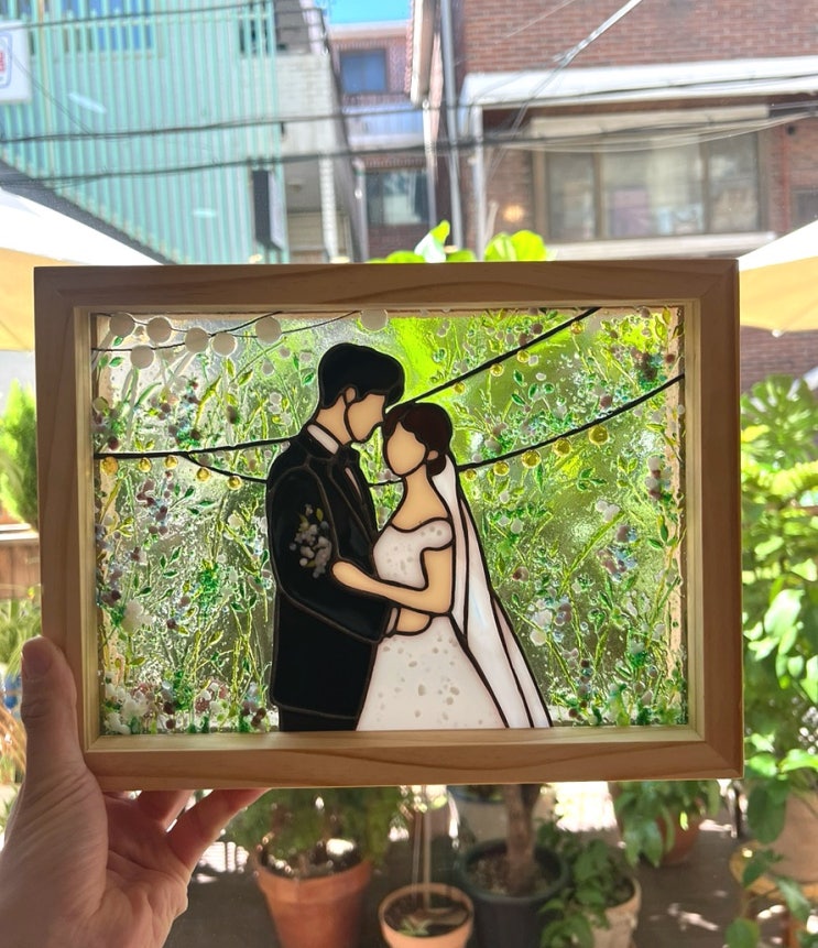 안녕하세요 :> 도도유리공예(도도글라스) 입니다. 예쁘게 야외 웨딩결혼식 사진으로 유리공예 스테인드...