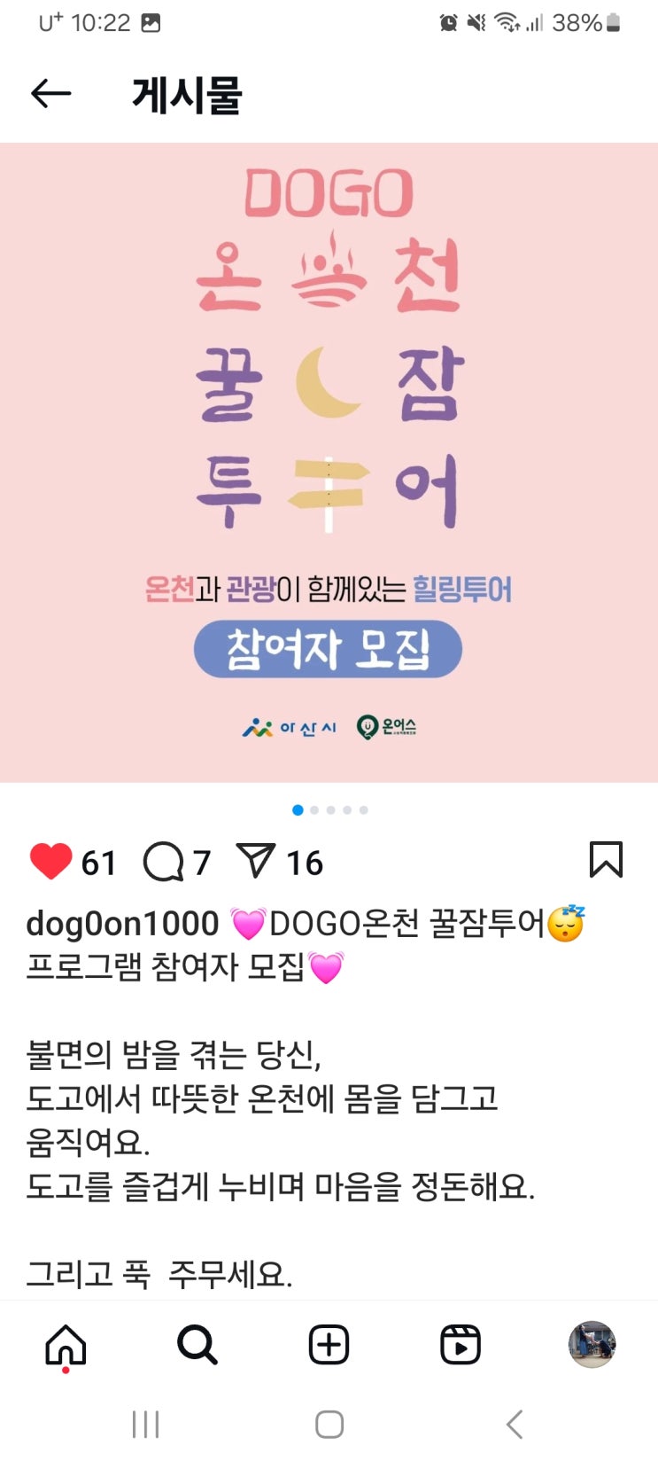 불면증 있는 분께 추천합니다. 도고온천에서 2박 여행 어떠세요~https://docs.google.com/forms/d/e/1FA...