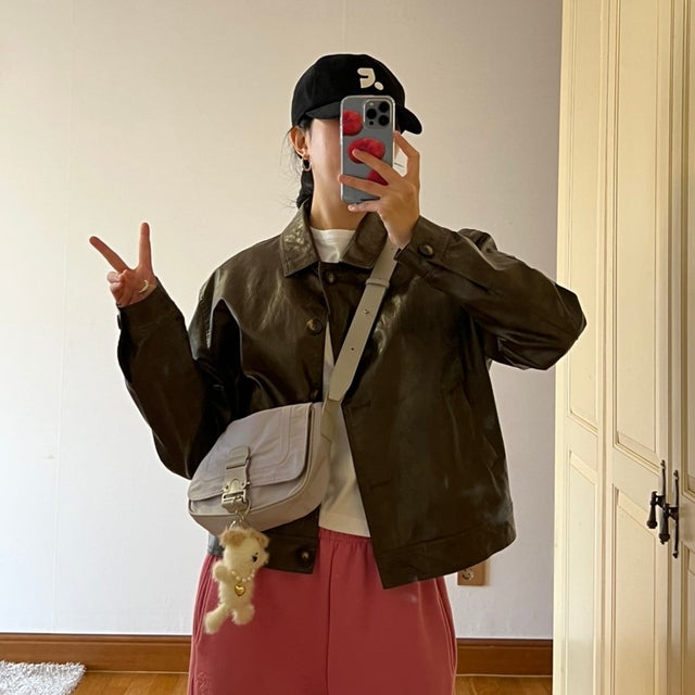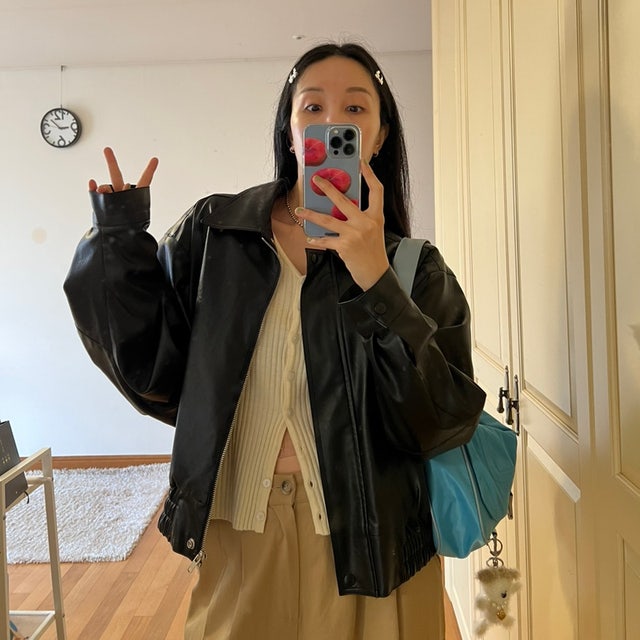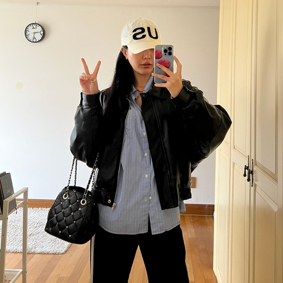 230412 은상박 데일리룩-다이애그널 CHUBBY SUMMER BAG 화이트,마뗑킴X리바이스 티셔츠,마뗑킴MS129운동화블랙,페이크레더팬츠,블랙자켓,하트목걸이