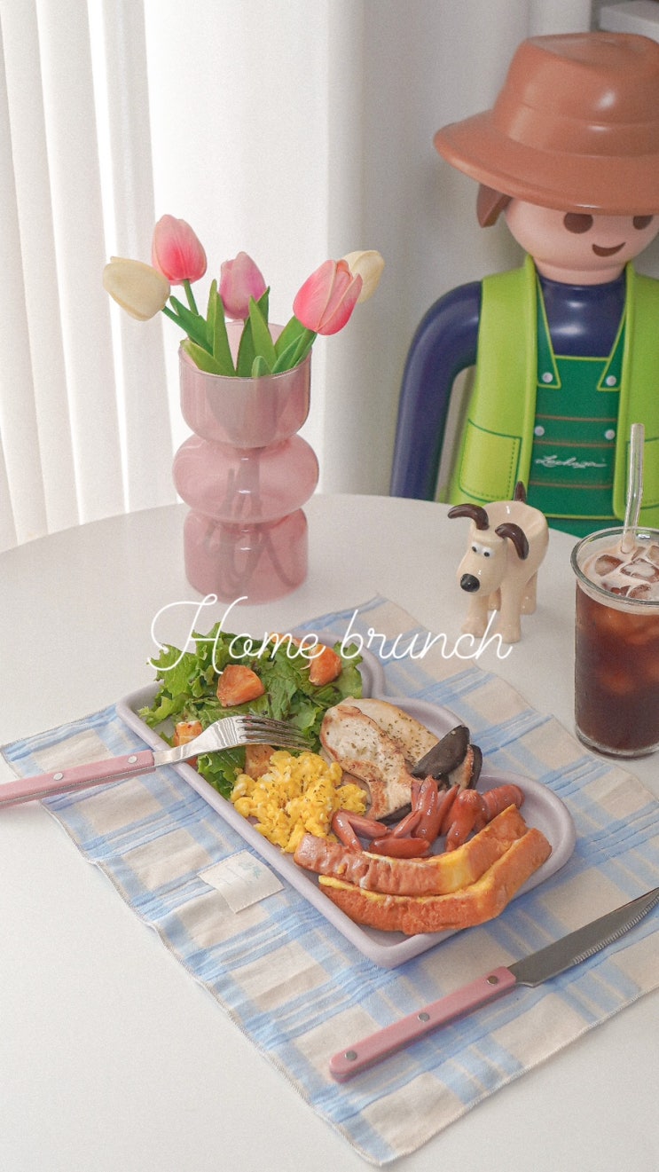 한국에서 즐기는 잉글리시 브랙퍼스트 프렌치토스트와 소시지로 간단한 홈브런치 만들기 집에서 일하는 프...