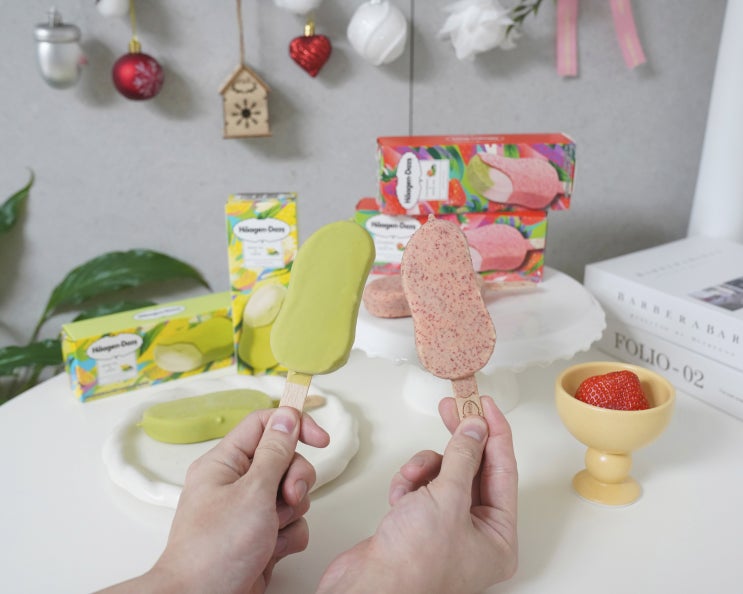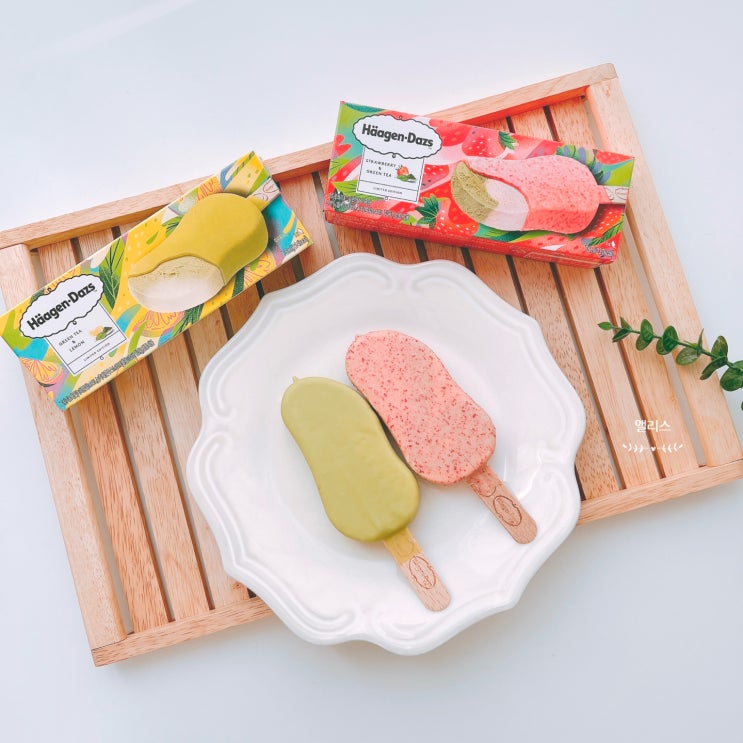 하겐다즈 스틱바 스트로베리 그린티와 레몬 소르베 아이스크림 신제품 상큼달콤