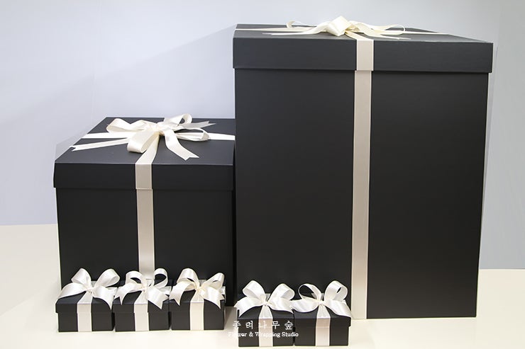 콘텐츠 크리에이터 그룹 머쉬룸컴퍼니의 대형 기프트 박스 검정색 초대형과 작은 박스 싸바리 상자 기업 및...