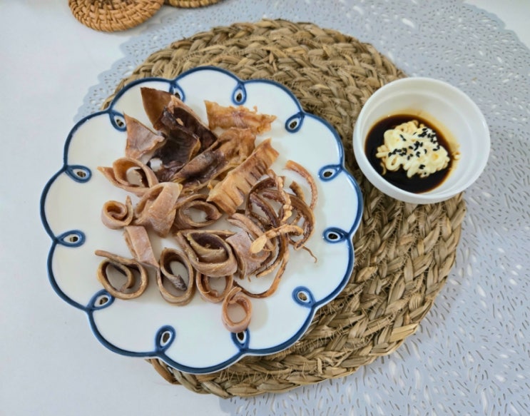 마른오징어 부드럽게 굽기 에어프라이어 오징어구이 마요네즈 소스 혼술 안주 추천