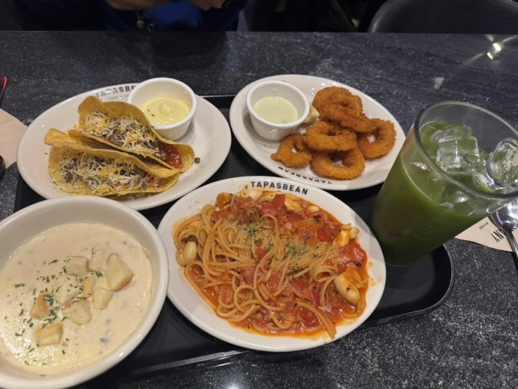 송도롯데몰맛집 송도파스타맛집 타파스빈 송도롯데몰점 베이컨토마토파스타 타코스 깔라마르스 그린클렌즈주스