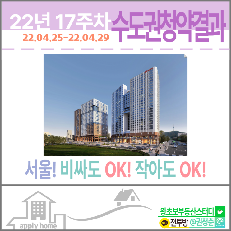 안녕하세요! 부동산 인플루언서 권청춘입니다. 22년 17주차, 청약결과를 공유드립니다. 조큼 늦은 감이 있...