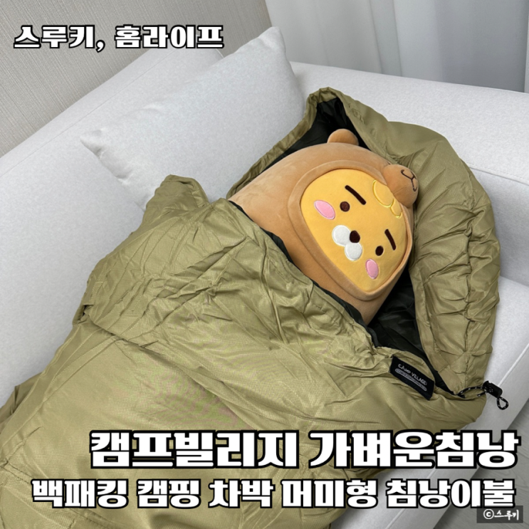 삼계절 경량 차박 캠핑침낭 후드형침낭이불 캠프빌리지