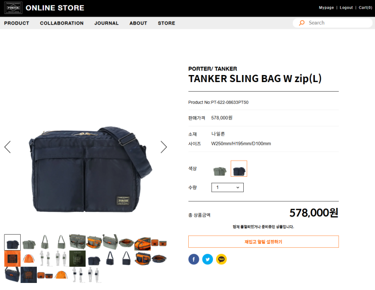 요시다 포터 뉴 탱커 슬링백 W zip 라지 내 돈 내