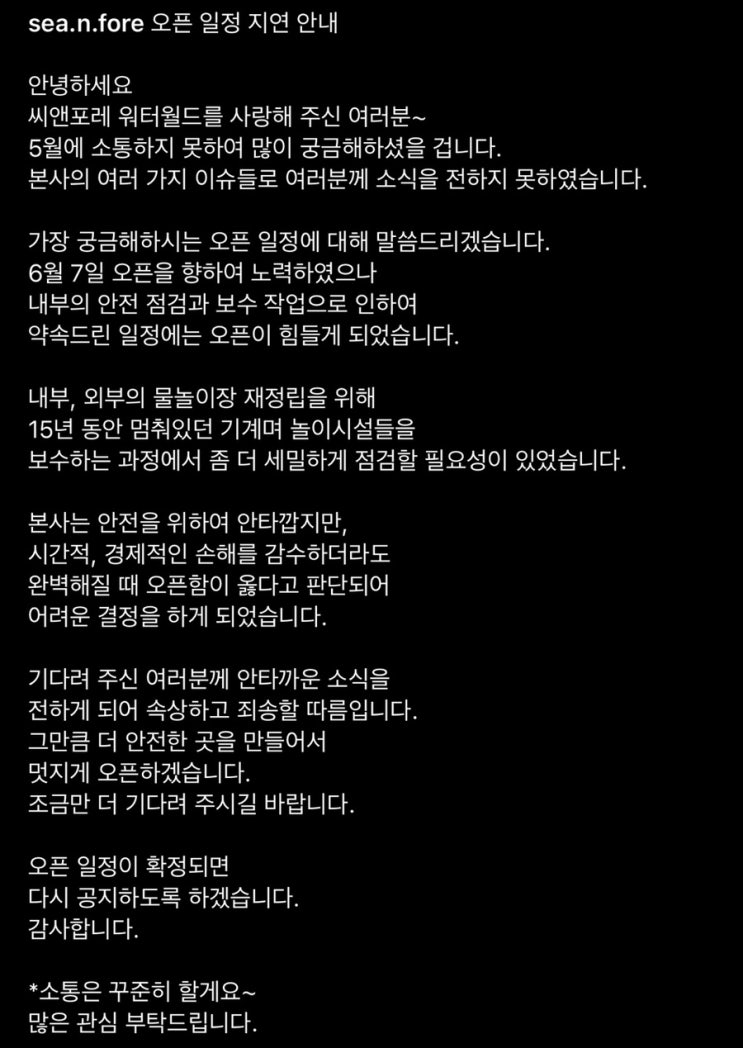영주 씨앤포레 워터월드 개장 연기