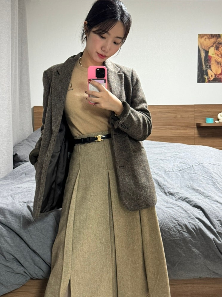 겨울 울 플리츠 롱스커트 코디 스타일링