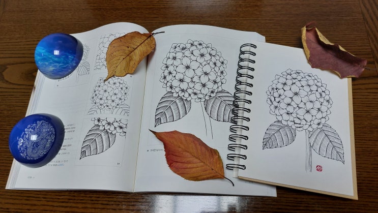 방구석 취미생활 - 펜화 | 수국, 백합, 장미, 능소화