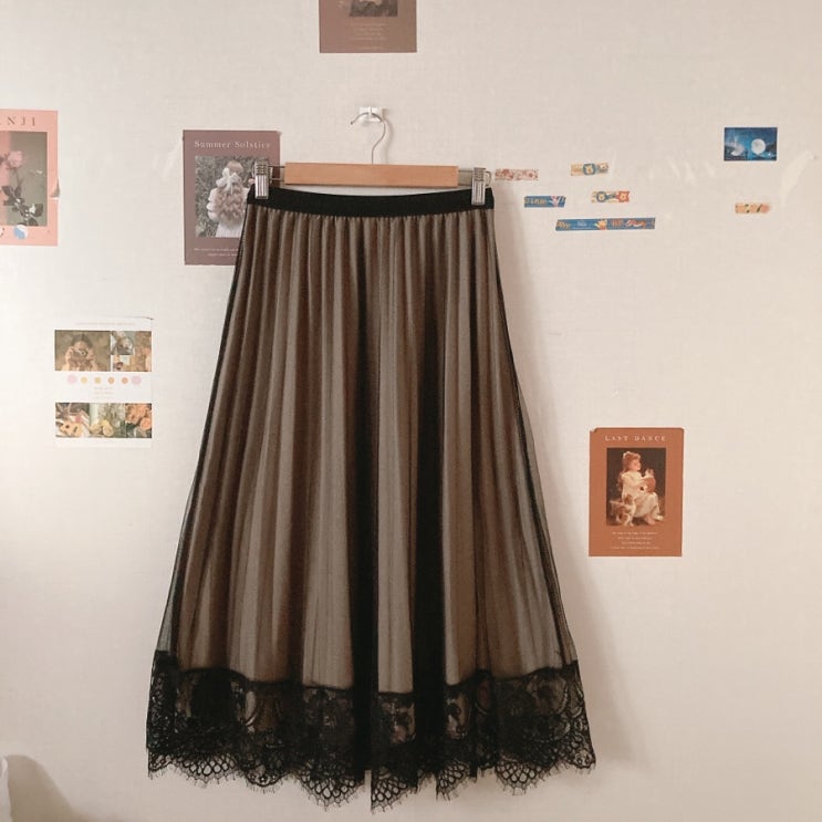 블랙레이스 플리츠스커트