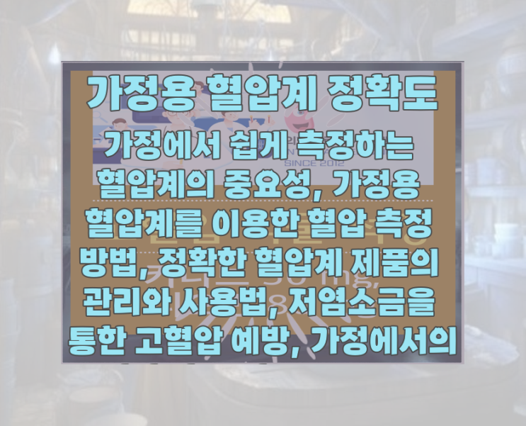 가정용 혈압계 정확도, 가정에서 쉽게 측정하는 혈압계의 중요성, 가정용 혈압계를 이용한 혈압 측정 방법, 정확한 혈압계 제품의 관리와 사용법, 저염소금을 통한 고혈압 예방, 가정에서의 정확한 혈압 측정으로 건강 관리