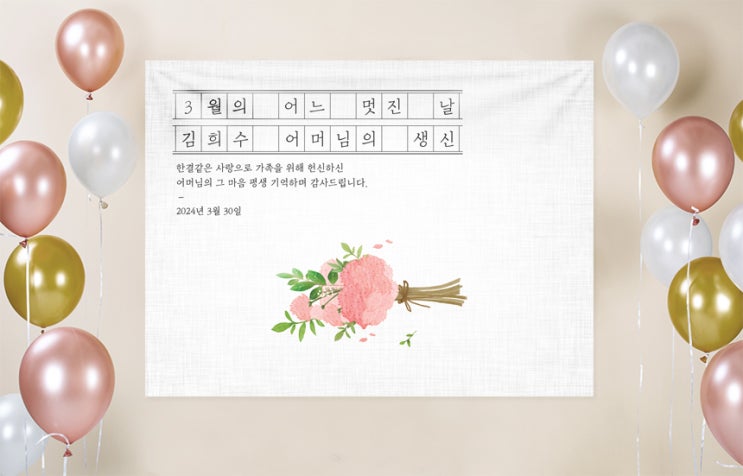 오보기 생신 회갑 팔순 구순 퇴임 칠순 환갑 현수막 고급스러운 심플한 꽃다발 감성 현수막 홈파티 포토존 플랜카드 제작 평일 당일출고