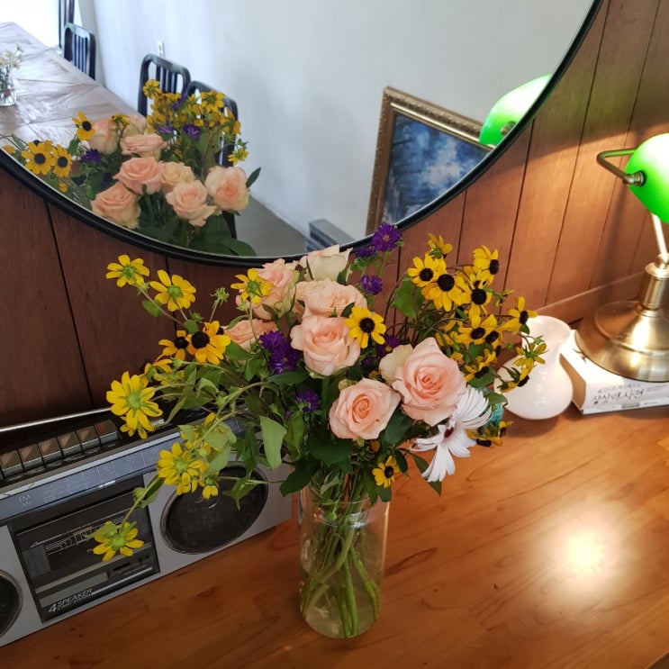 꽃일기 | 루드베키아, 주밀리아 장미, 다빈치 장미, 가브리엘라 장미, 미니 과꽃 보라, 커런트케잌 거베라