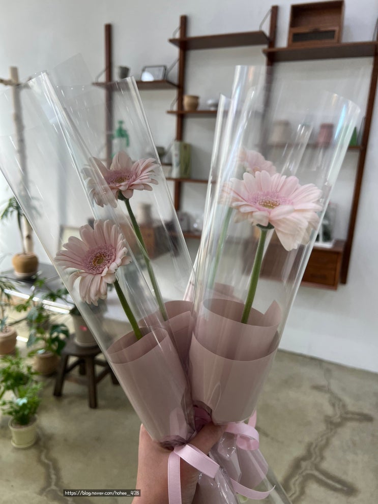 [양산 범어] 겨울꽃 거베라 한송이 꽃다발 가벼운 선물 추천 '플라워리' / 핑크 거베라 꽃말,전설
