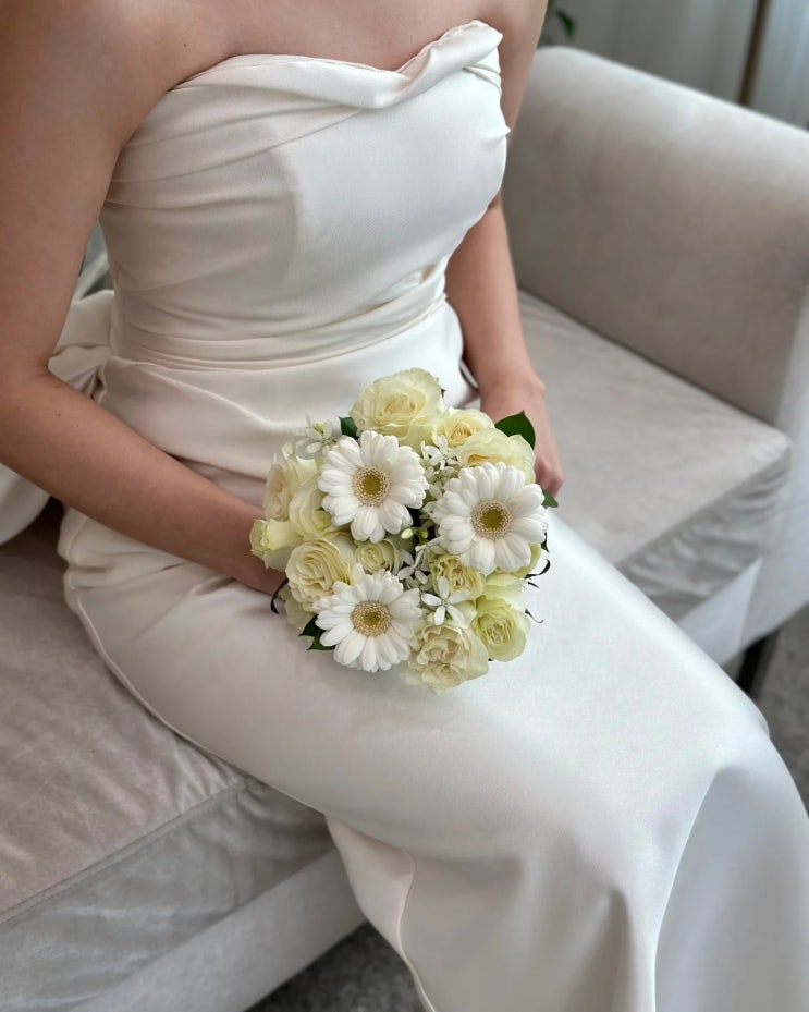 여수 본식 화이트 거베라 부케 | 히든베이 웨딩홀