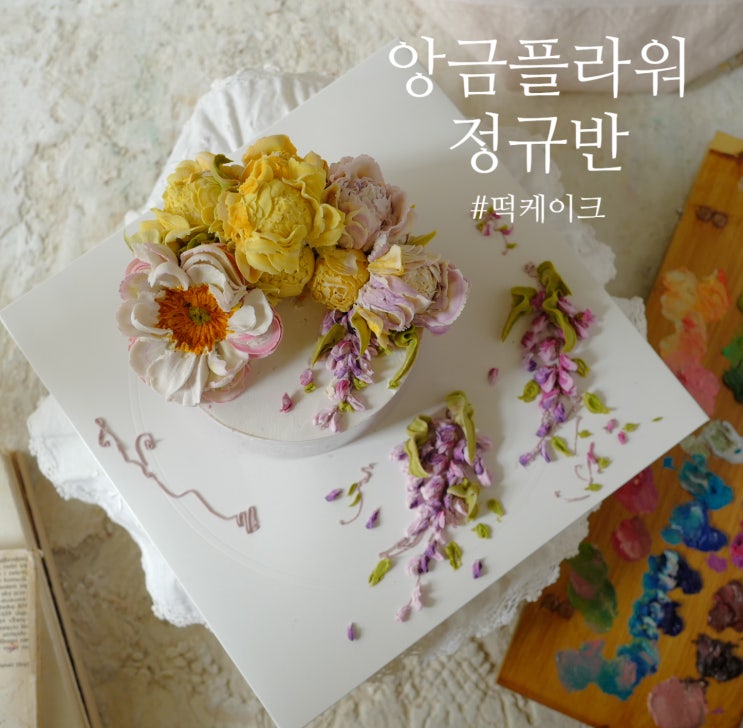 노란 작약과 보랏빛 등나무가 어우러진 앙금 플라워 케이크 정규과정