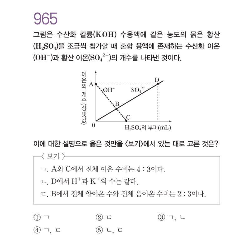 간단한 문항입니다. 임의의 상댓값을 스스로 잡는 게 중요하고, 중화 반응이 일어날 때 이온의 개수를 변수...