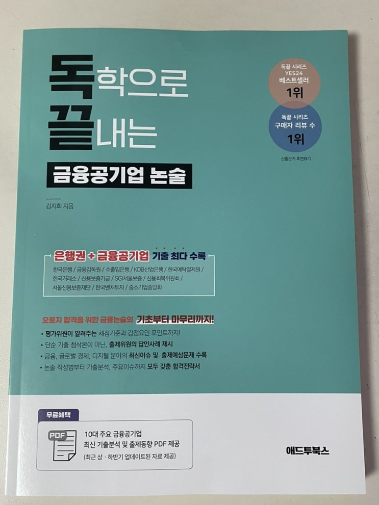 안녕하세요, 오늘은 독끝 시리즈 중 금융공기업 논술 관련한 책에 대해 소개해드리려고 합니다. 금융 논술...