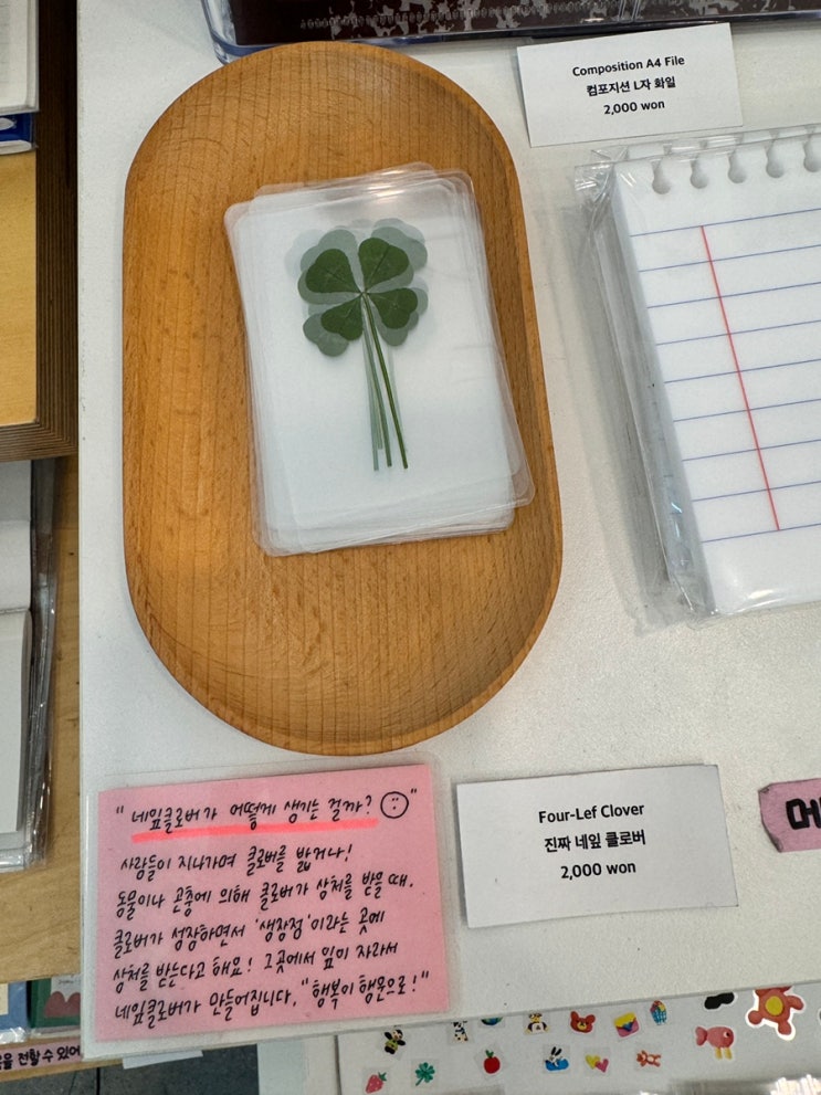 지우개 뽑기 하는 문구점. 선화동 소품샵 프렐류드 진짜 네잎클로버도 있음