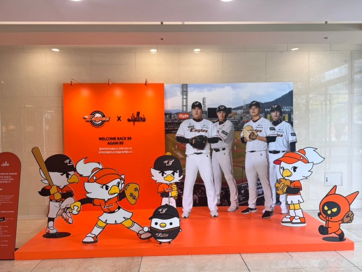 갤러리아타임월드 포토존. 수리의 선물트럭 한화이글스 어센틱 스파이더 흰유니폼