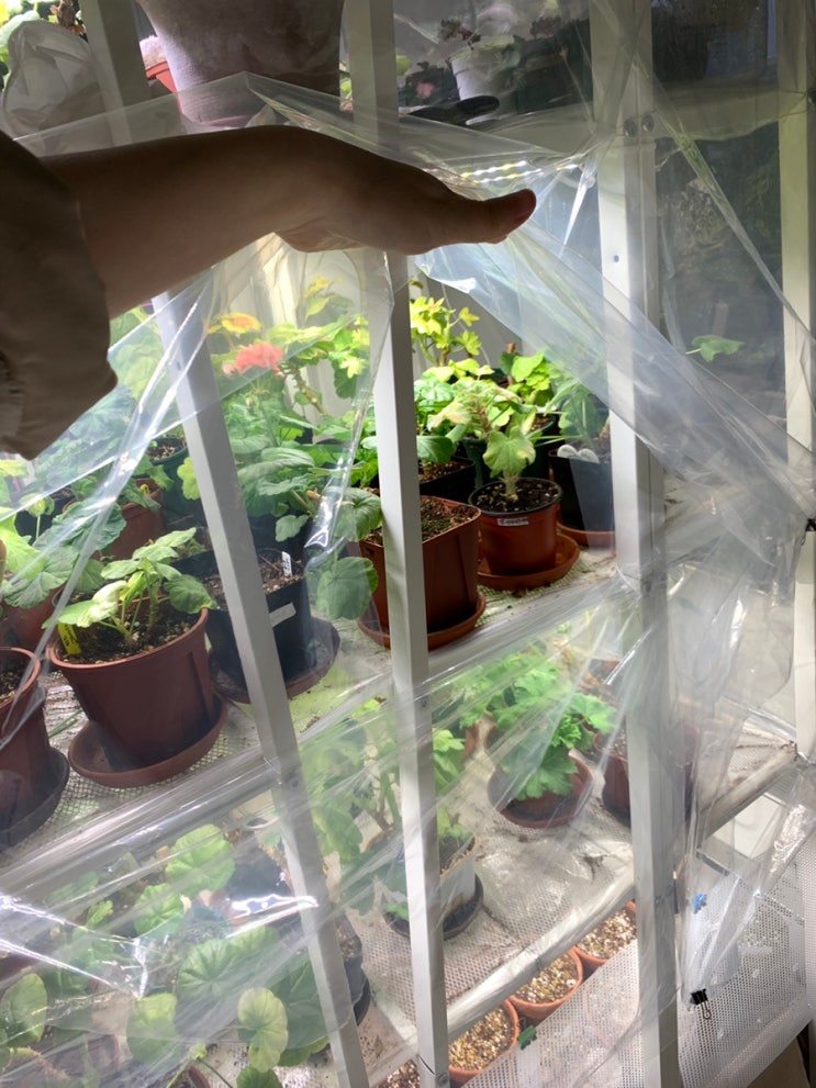 뒷베란다 제라늄 선반에 방풍비닐 설치. 월동준비 / 베란다정원