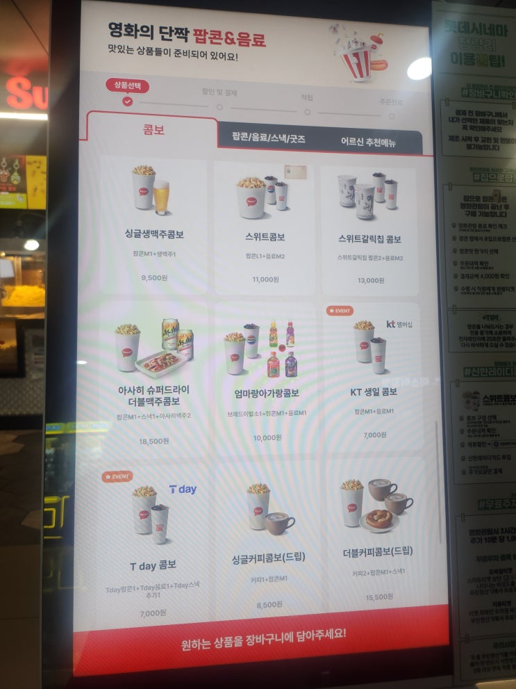 롯데시네마 매점 메뉴 라면 팝콘 가격정보
