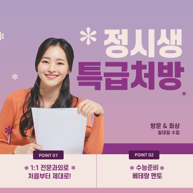정시생 특급처방! 수능준비생 필독글 반갑습니다. 오랜 기간동안 수능 대비 일대일수업을 해온 전문 교육기...