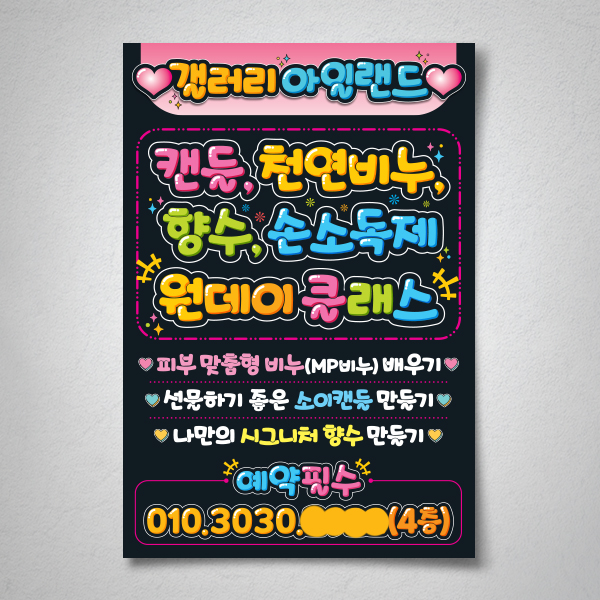 2절사이즈 비누공방 원데이클래스 홍보용 pop글씨 주문제작