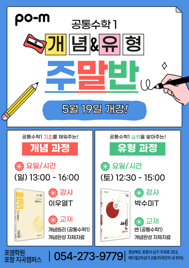 [포항 중등 수학학원] 고등수학 학습, 공통수학1 개념·유형 주말반으로 시작하세요✍️