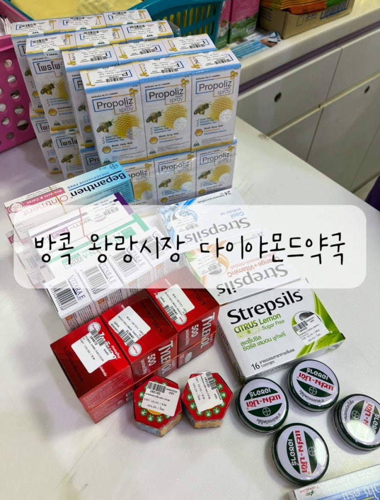 방콕 왕랑시장 다이야몬트약국 ! 태국은 워낙 약이 저렴해서 안살수가 없겠더라고요! 양가 부모님 및 회사...