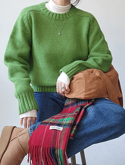 [위드마리] 올리브 울 헤라시 도톰 라운드 니트
