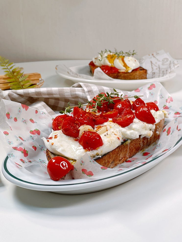바질페스토 오픈샌드위치 레시피 토마토 콩피 만들기 샌드위치