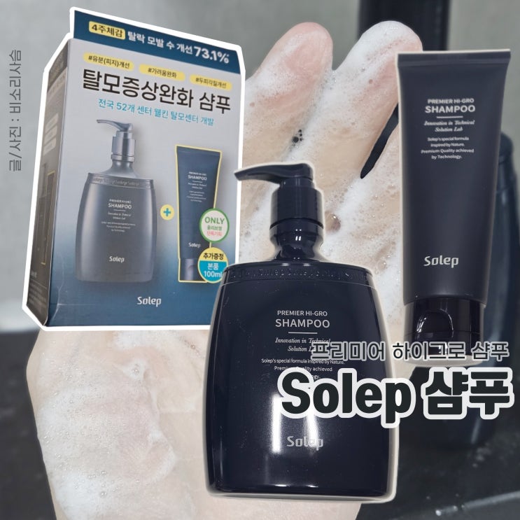 머리숱 많고 건강한 모발을 자랑하는 배우 기은세님이 앰버서더로 활동 중인 솔랩의 프리미어 하이그로 샴...