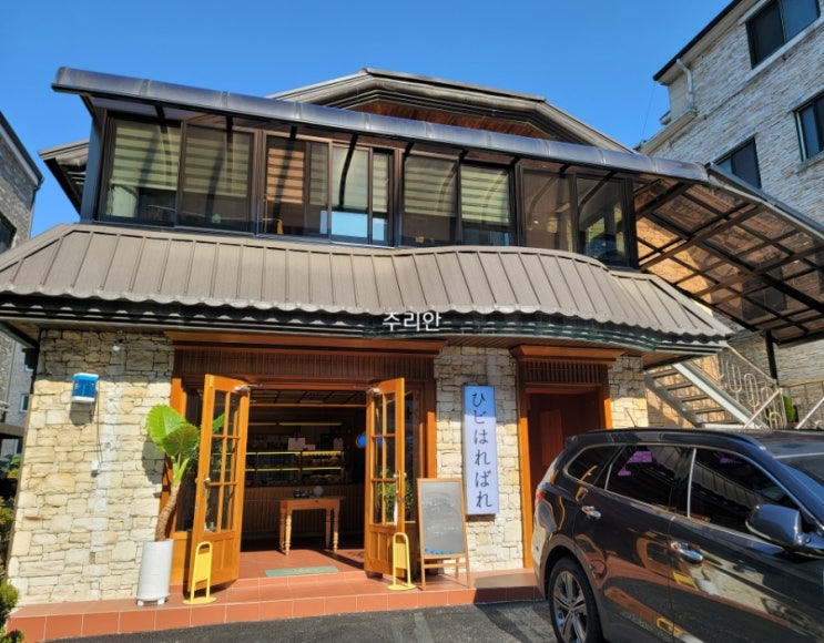 밥을 먹고 들어가는 길에 발견한 카페 딱 이 건물만 보면 일본에 온듯한 느낌이 들게 합니다. 간판조차도 ...
